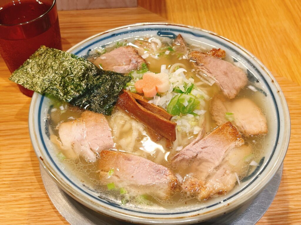 スープは澄んでいますがしっかり出汁が効いています。私は塩ラーメンのようなあっさりさを感じましたが、不思議なことに夫には少々塩辛く感じたようです。