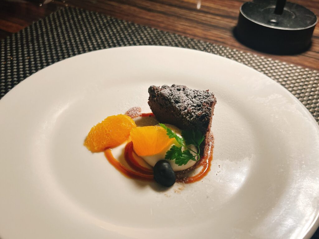 〆のデザートは甘さ控えめのガトーショコラで美味しかったです。