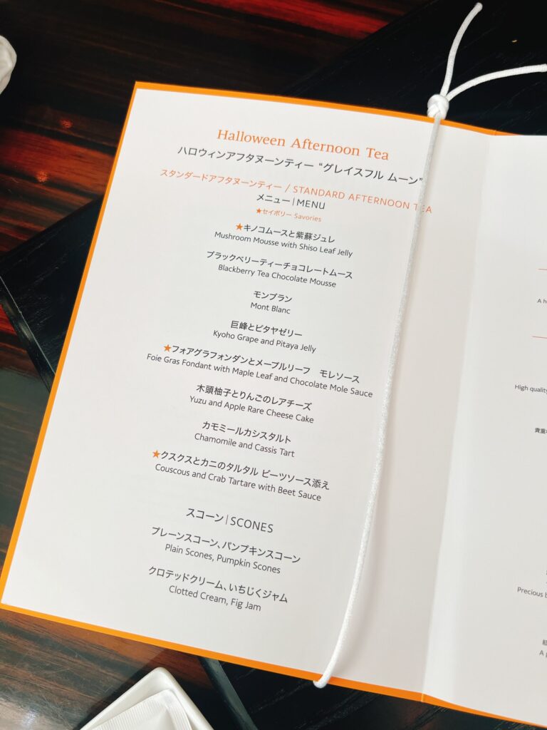 今回は食事はハロウィーン仕様に変わっていて、さらにティーのメニューも少し秋らしいフレーバーに変わっていました。