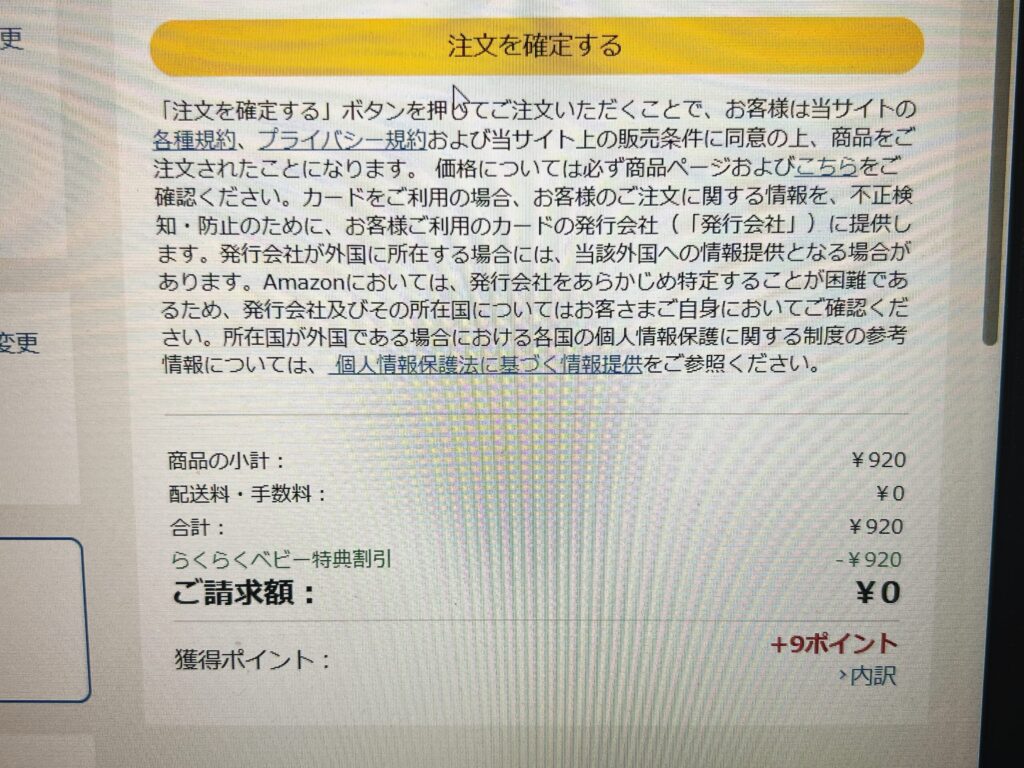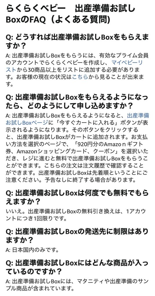 Amazonプライムに加入していることに加え、アカウント内でらくらくベビーというものに登録をして、ほしいものリストを作成するという条件がありますが、作業自体は全く難しくありませんでした。