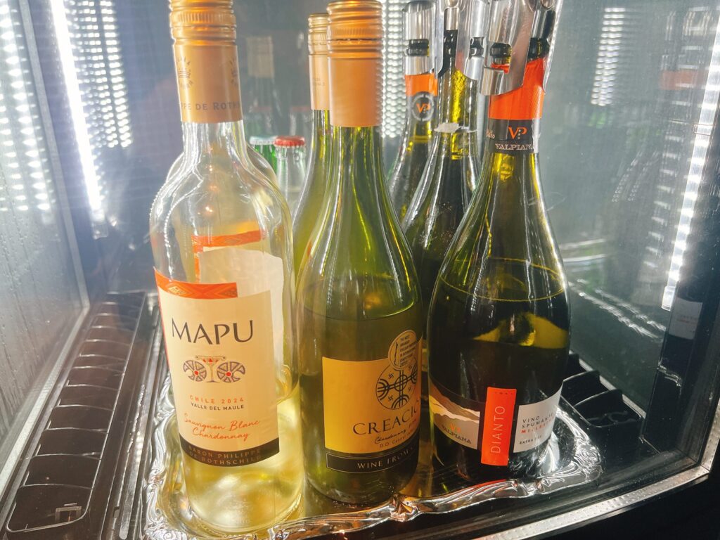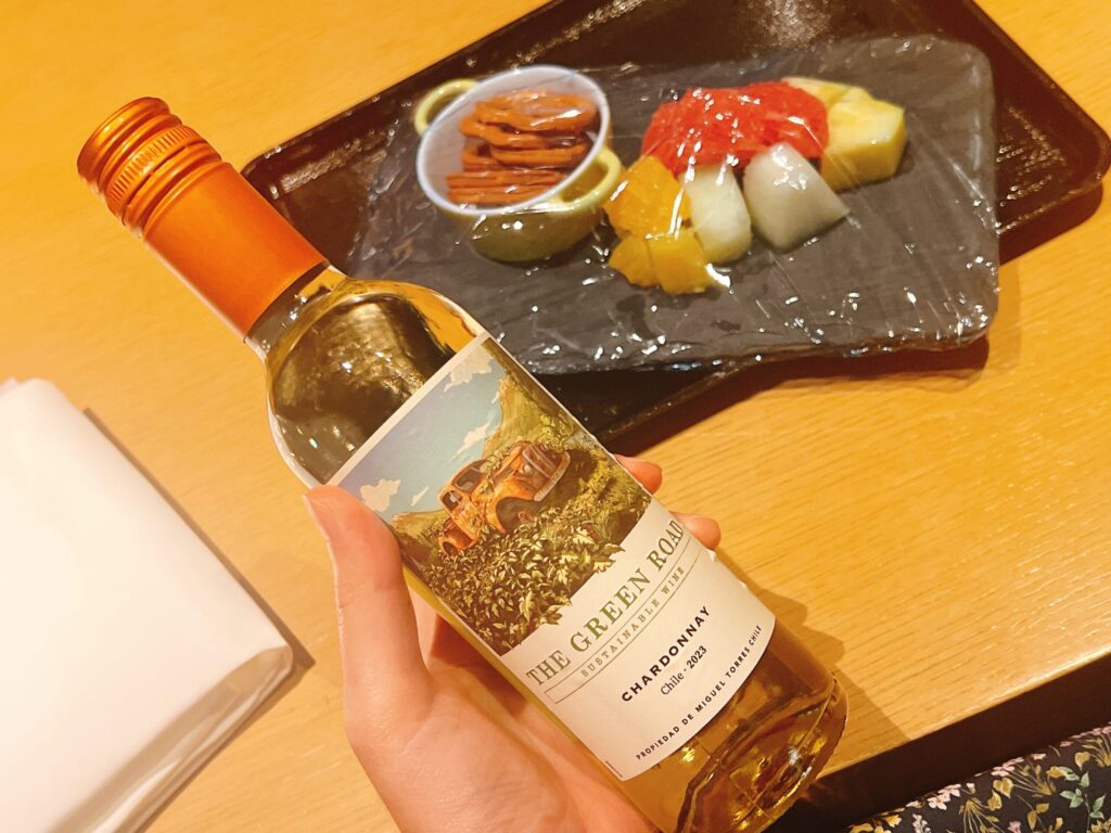 部屋に戻ると、プラチナステータス会員特典のウエルカムギフトとして選択した、白ワイン(ハーフボトル)とフルーツの盛り合わせが届いていました。ポイントより現物派のぴんねず家・・・