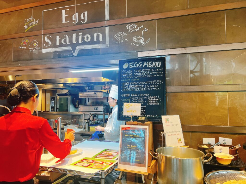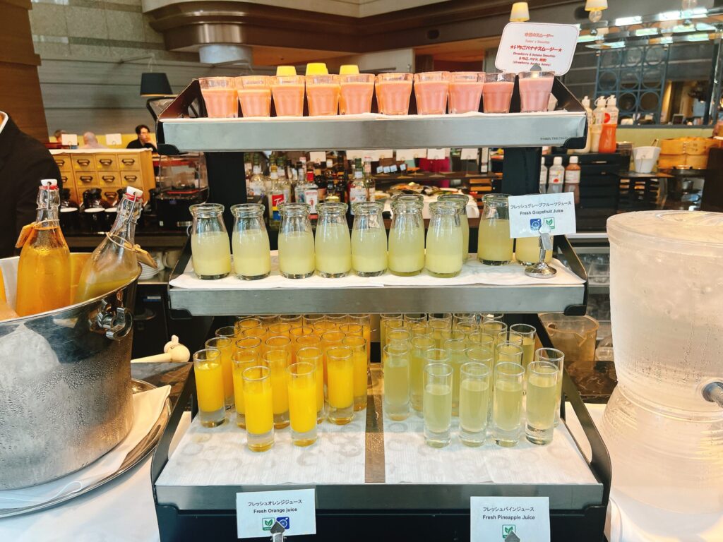 そして、今回の宿泊で最も満足度が高かったのは朝食ビュッフェ。クラブラウンジでも朝食の準備はありましたが、圧倒的に1階のレストランでのビュッフェがおすすめです。生絞りのジュースや卵料理の種類が豊富!!プラチナステータスがあると、朝食は1階のレストランで食べた後に、ラウンジに行くことも可能なので両方行って比べてみるのもよいと思います。