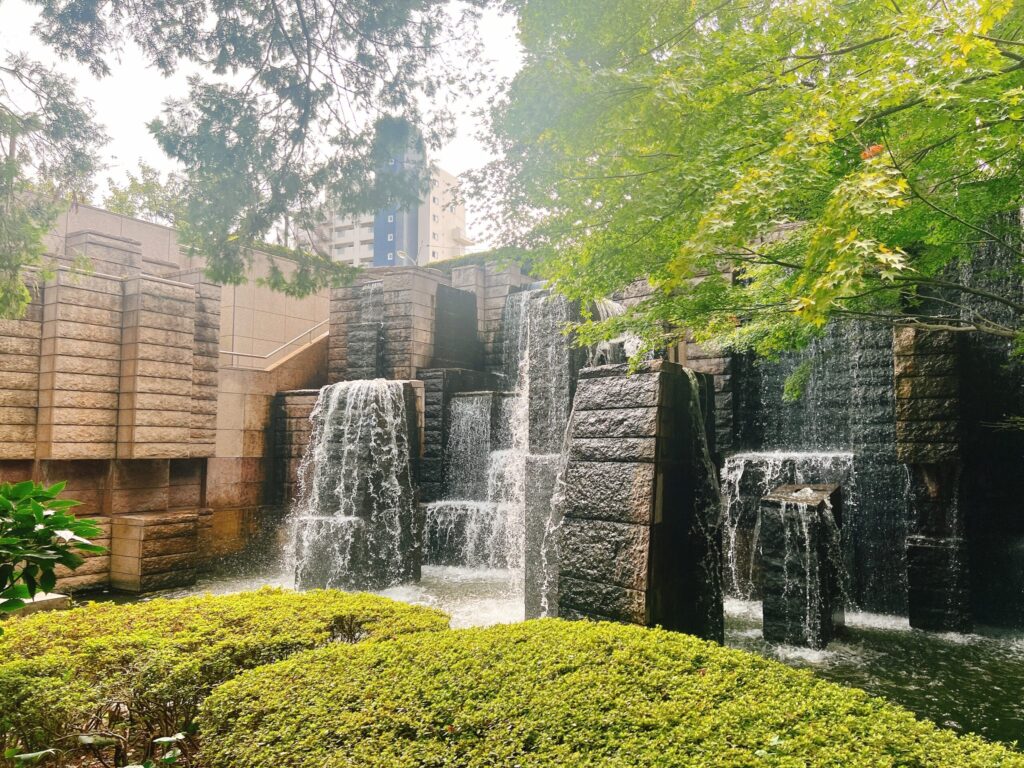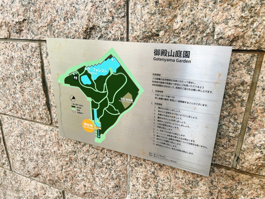 食後はホテル横の御殿山庭園へお散歩へ。10分もあればぐるっと回れるくらいの広さで、妊娠24週の妊婦にとっては食後の運動にちょうど良い距離でした。