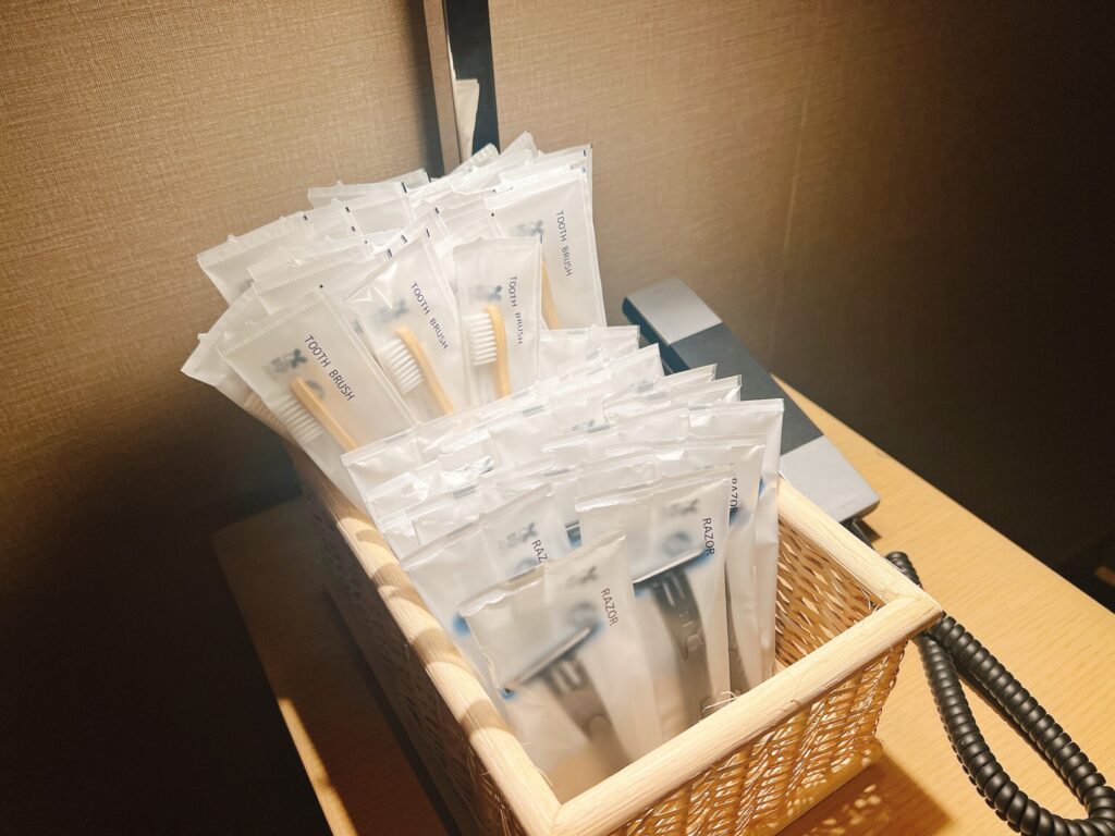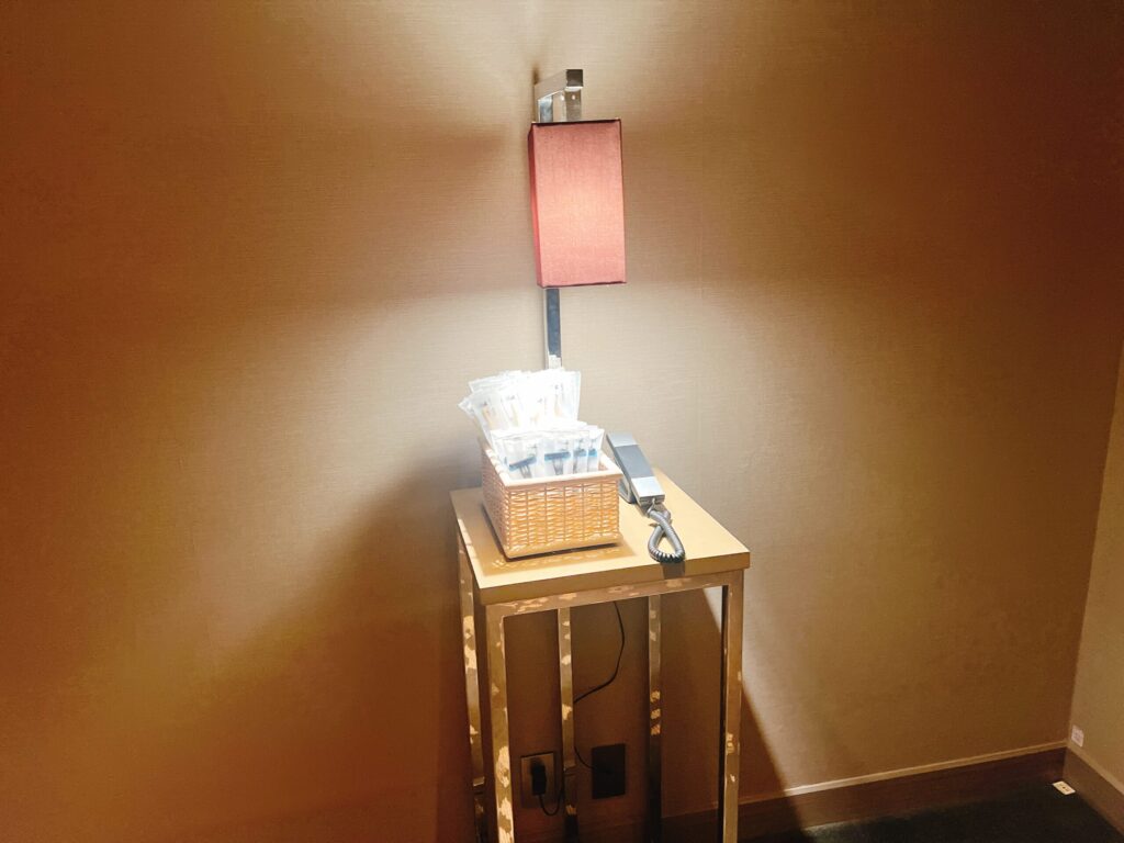 ところで東京マリオットホテルで唯一残念だったのは、アメニティのクオリティが低かったこと。備え付けのシャンプーは髪がキシキシになるし、歯ブラシと髭剃りはエレベーターホールに設置されているのを各々が回収するシステム。さらに歯ブラシの柄が竹のような素材でできているので非常に磨き心地が悪いです。さらにヘアブラシはそもそも置いてないようで、ご自身で持参することをお勧めします。